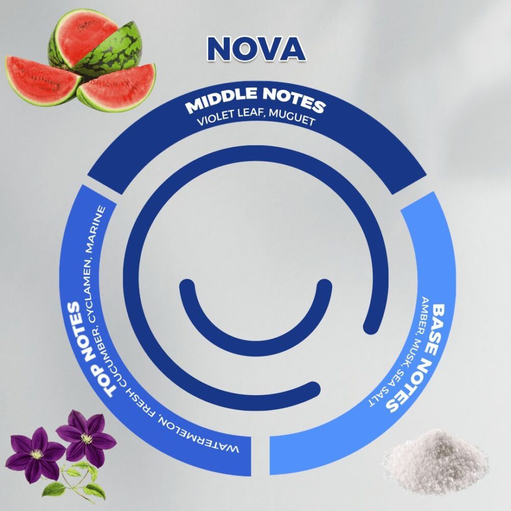 Travel to the most beautiful beaches with a sea breath. Nova aromatic blend has a distinctive and attractive formula that helps you relax and feel comfortable and energized together.
